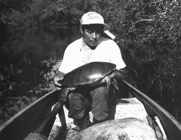 Dermatemys nesting behavior makes headstarting programs impractical. Management recommendations have focused on increasing adult survivorship through reduction of large-scale commercial exploitation. In the absence of strong enforcement capabilities, and in an area of low human population density, legal restriction of commercial hunters activities has proven a feasible initial strategy. By allowing continued small-scale removal by subsistence hunters, the support of that numerically larger constituency may be maintained.